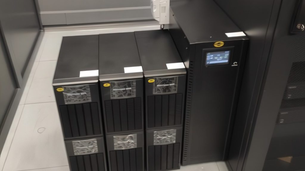 Sprzęt: 1 x ORVALDI Power+ 120kVA4 x Moduł mocy 30kVA1 x zestaw 40szt baterii o pojemności 100Ah na zewnętrznym stojaku